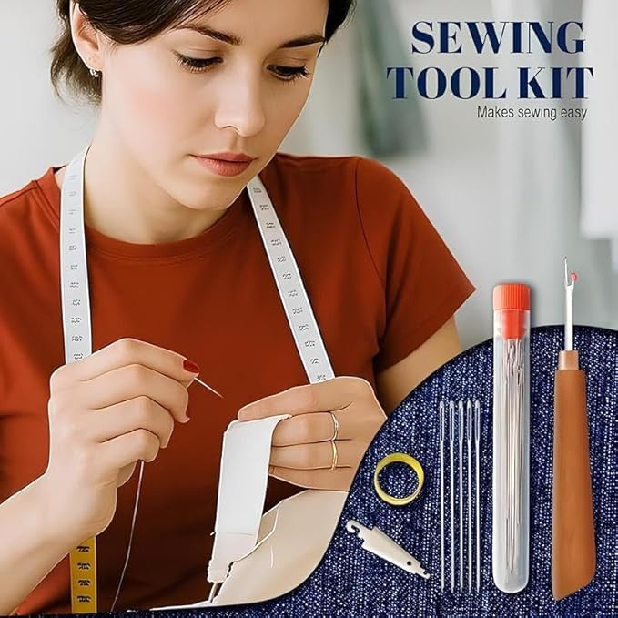 Yes! It includes everything you need — needles, threads, thimbles, and a seam ripper — perfect for beginners and experienced users.